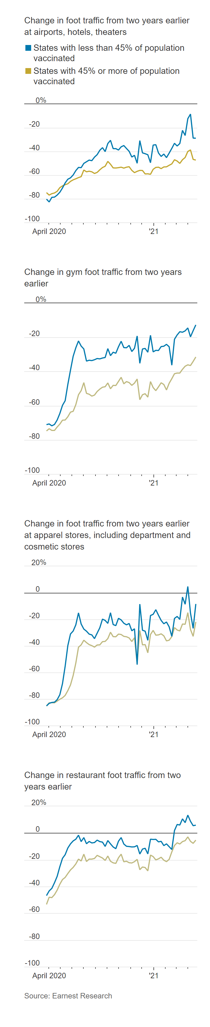 it compares states with high vs states with lower vaccination rates and then compares foot traffic at various public/retail locations based on it.
