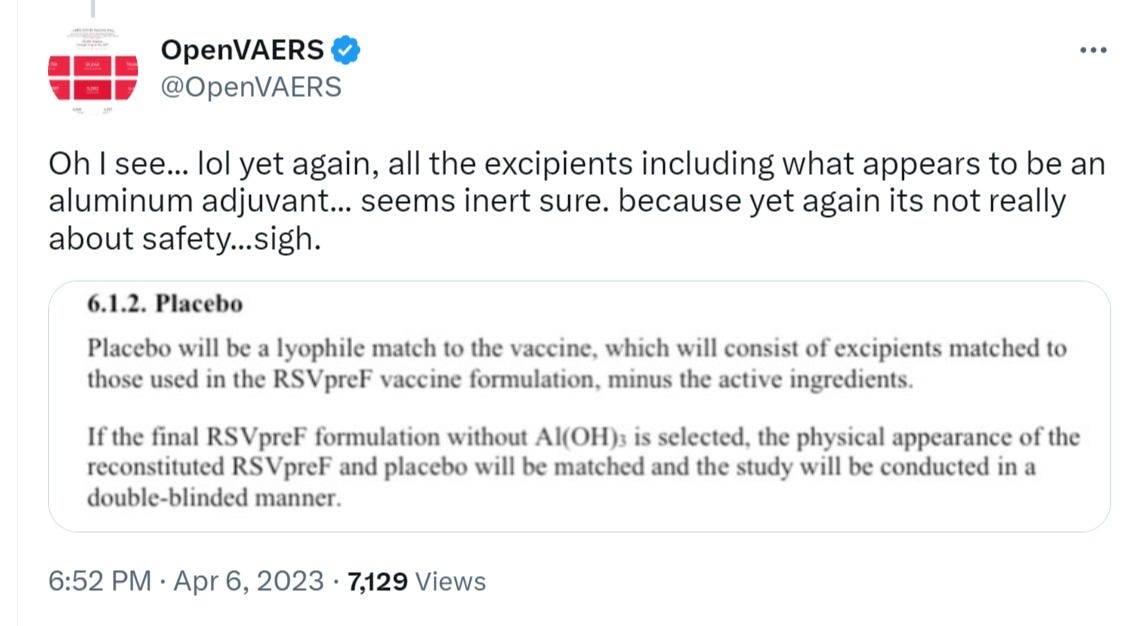 “placebo” was not placebo (like saline) it was something more noxious (aluminum hydroxide) used to mimic the appearance of the vaccine.