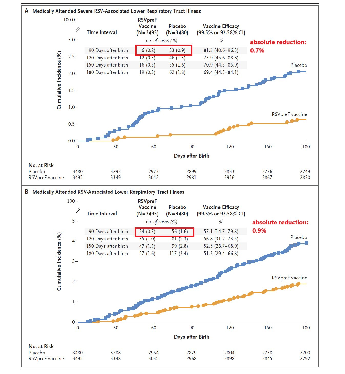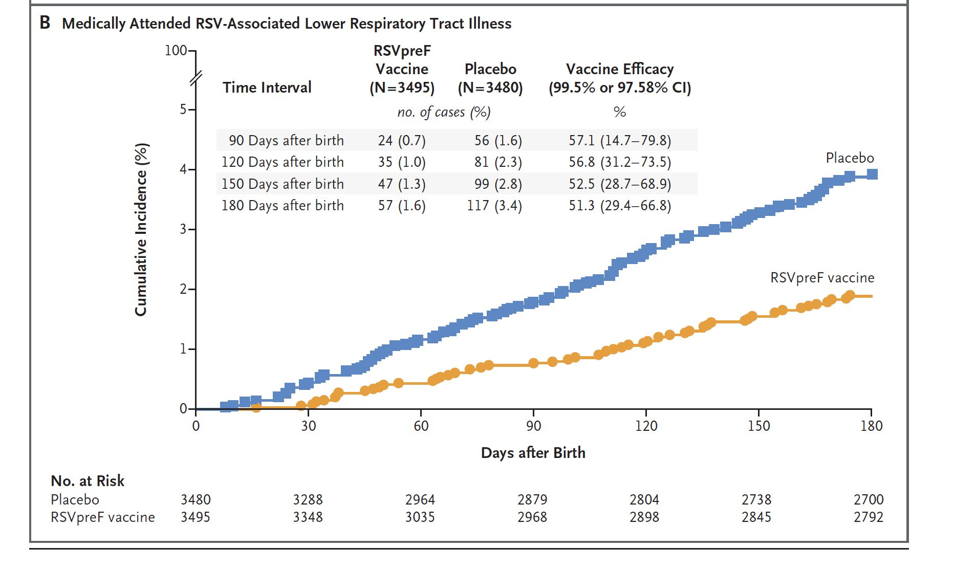 right in the abstract, this study tells us it failed to reach statistical significance for “medically attended RSV-associated lower respiratory tract illness” over a 90 day period. it IS however claiming efficacy for “severe” LRTI over the same period. stop me if you’ve heard that one before.