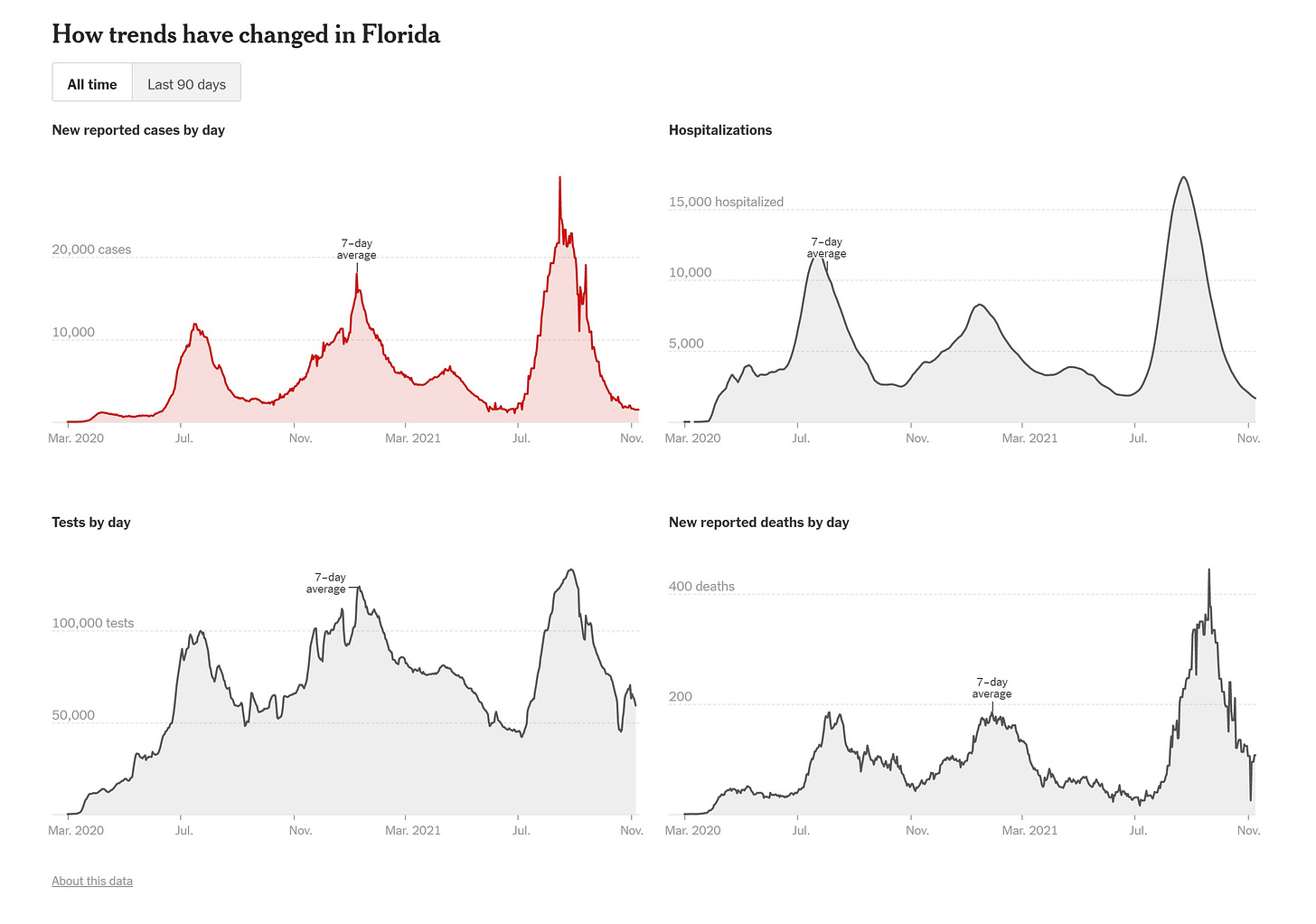 also note that contrary to what many seem to think, florida is a highly vaxxed state with 80% of 12 and up and 99% of 65+) so this “it was lack of vaxx” argument never really held water there.