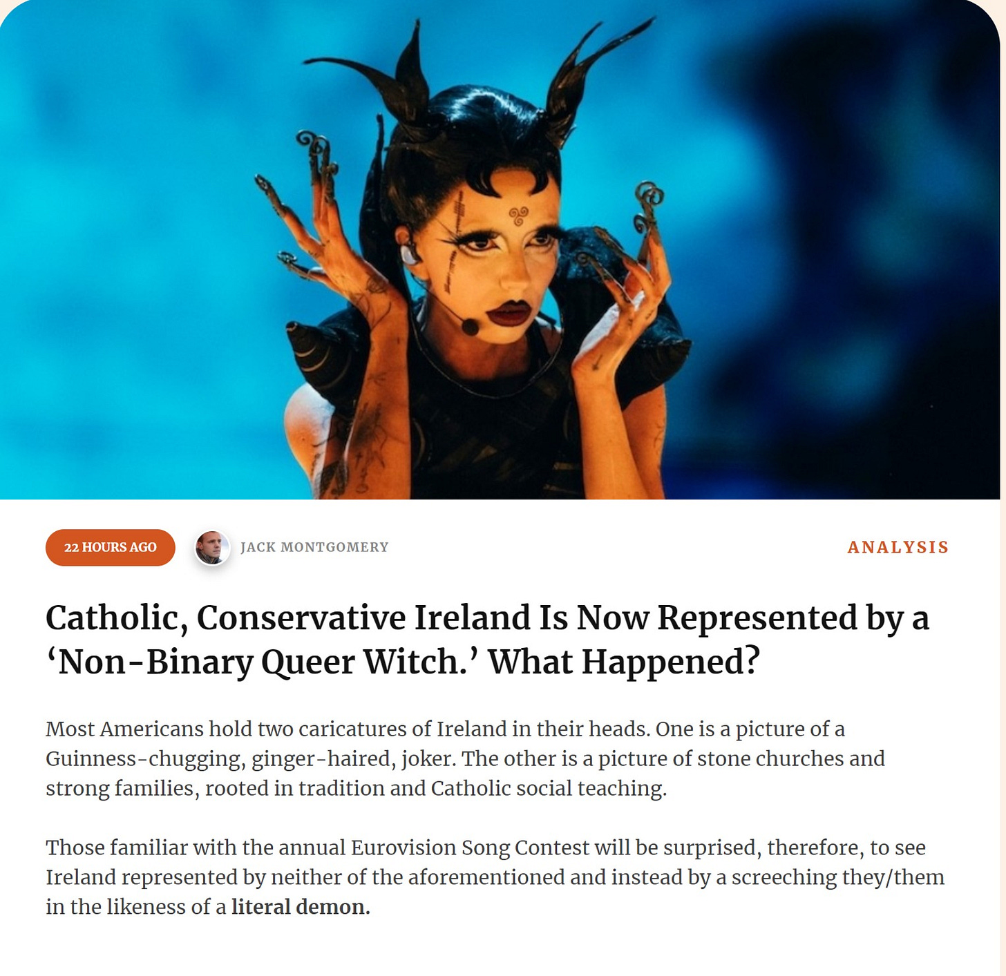 the image below is apparently the act that represented ireland in the eurovision competition. i watched the video. my advice to you is: “don’t.”