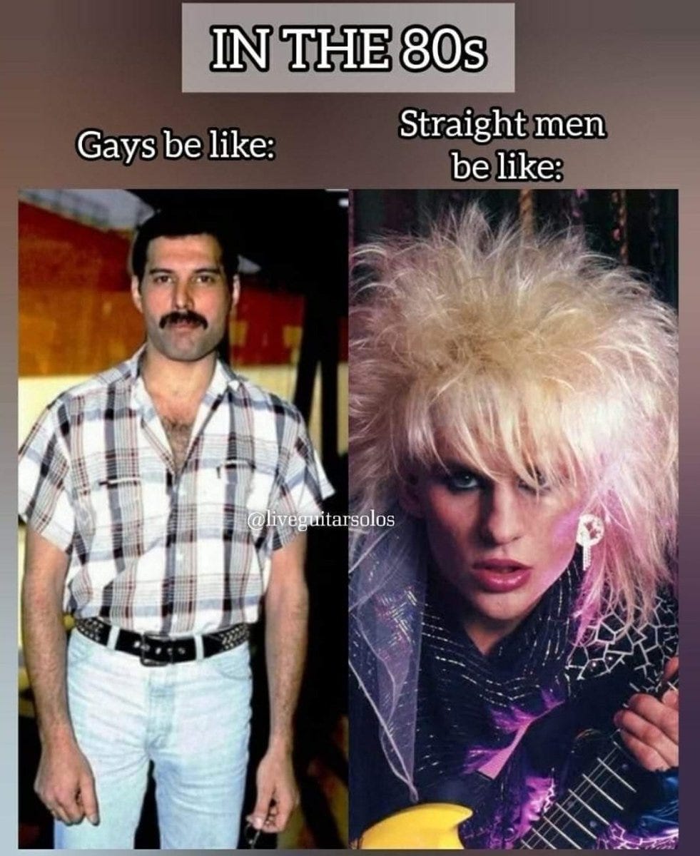 you be you. you wanna sing hard rock with big hair while dressed like you’re going to ru paul’s drag race? do it. fans loved it. sure, some elders got the vapors, but as the saying went: if the music’s too loud, you’re too old.