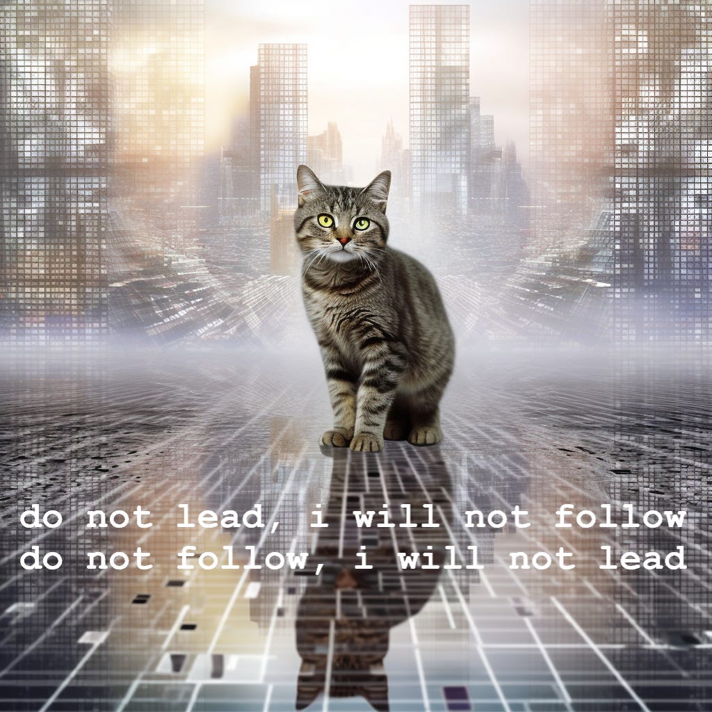 i doubt the (AI generated) song to follow will put any of these questions to bed and more likely than not stands to serve as a sort of rorschach test to elicit the priors of the viewer, but consider another possibility: