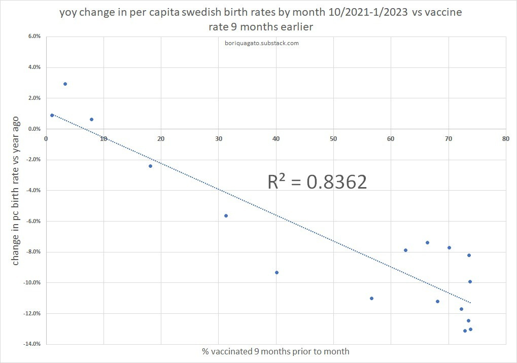 births are a highly multi-factorial and reflexive series and so the “well, it did not happen here in this year” is not the level of falsification it otherwise would be especially in light of this level of correlation on timing and a priori reason to expect causality. years with big drops are generally followed by big up years. the countries that did not see huge drops in 2022 generally had severe drops in natality in 2021 and so the comp is easy and the trend should be up (and yet is often still a bit down). it’s just opposing vectors. this trend and timing are FAR to prevalent to be dismissed based on such weak evidence.