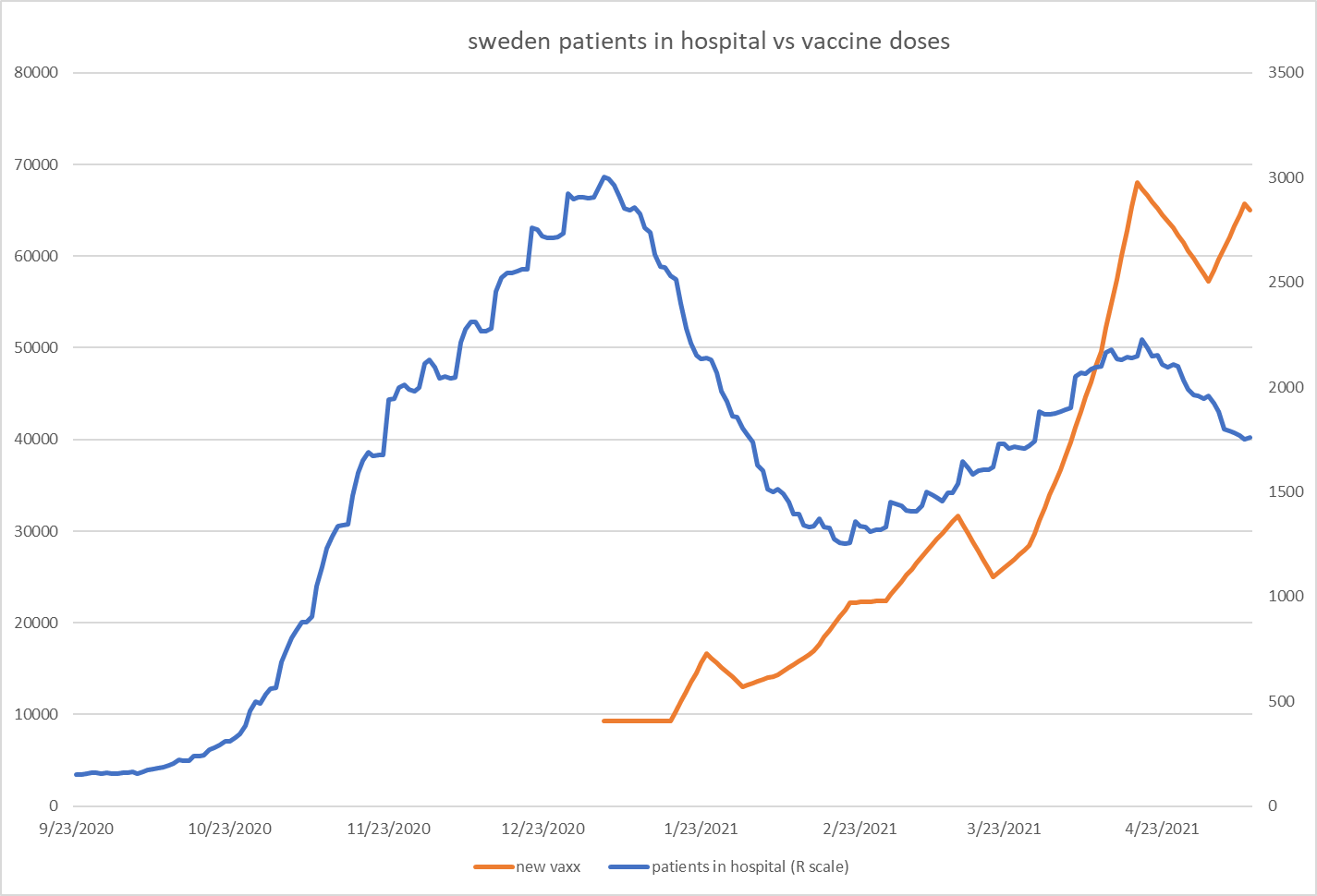 hospital census was in seasonally predicted decline. then vaccination started. then hospitalizations rose again out of season following the first doses (known to be immuno-suppressive. STUDY)