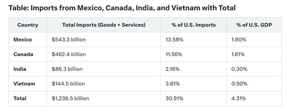 others will start to fall. it looks like mexico, viet nam, india, argentina, and israel already have and while the last 2 have immaterial trade with us, the others are significant. this is ~1/3 of all US imports moving to a “free trade no tariff system.”