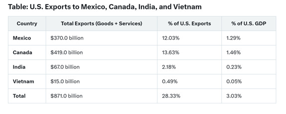 the US position here is far stronger than many of our key trading partners. “exports to US are 76% of canadian exports and 78% of mexican, 19% and 37% of respective GDP’s.