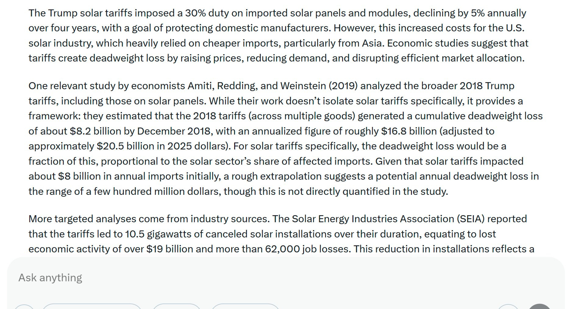 here’s an analysis of the solar tariffs, an especially stupid example as it was for an end product that probably lacked any actual commercial viability absent regulatory mandate and statist subsidy: