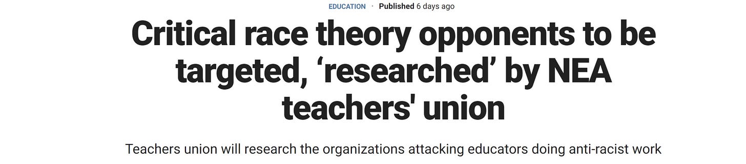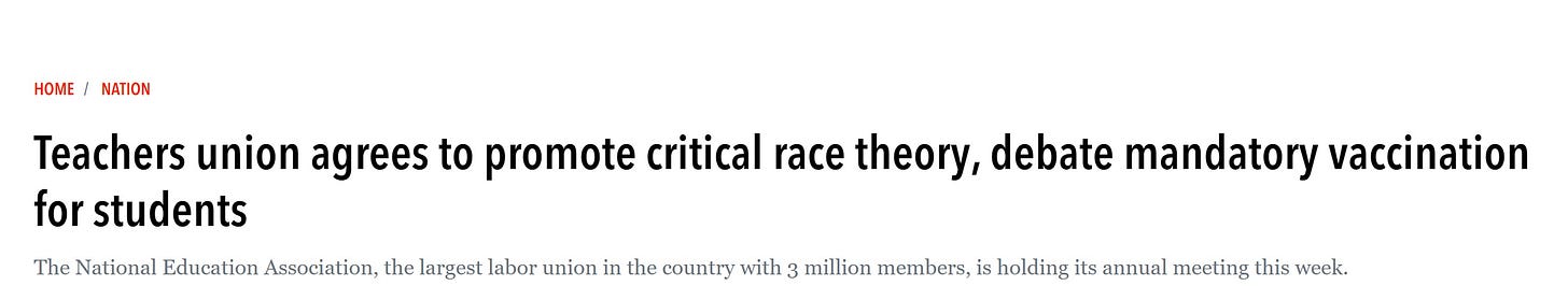 is anyone else starting to suspect that the reason teacher’s unions are so desperate to teach CRT to your children is to mask the fact that there is probably no group in the US that has done more harm to minority children over the last several decades than teacher’s unions?
