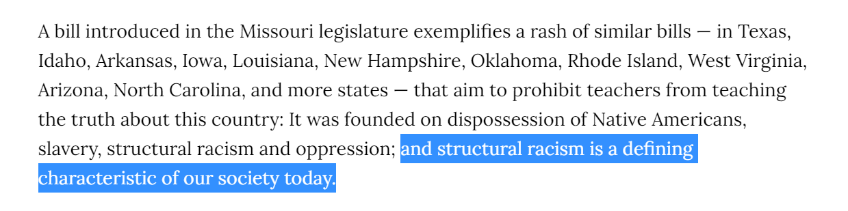 this is not “teaching truth” it’s indoctrinating students into some form of assumptive original sin guilt or miring them in a cult of victimhood to substitute persecution narratives for a desire to strive or belief in themselves and their ability to better their lives.