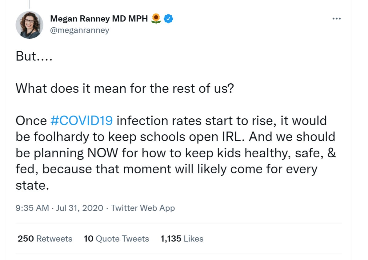 here is megan “lock down, mask up, and close the schools” ranney, who so memorably got caught telling fibs about how full the hospitals were clarifying for us what “we knew in RI in summer 2020.”…