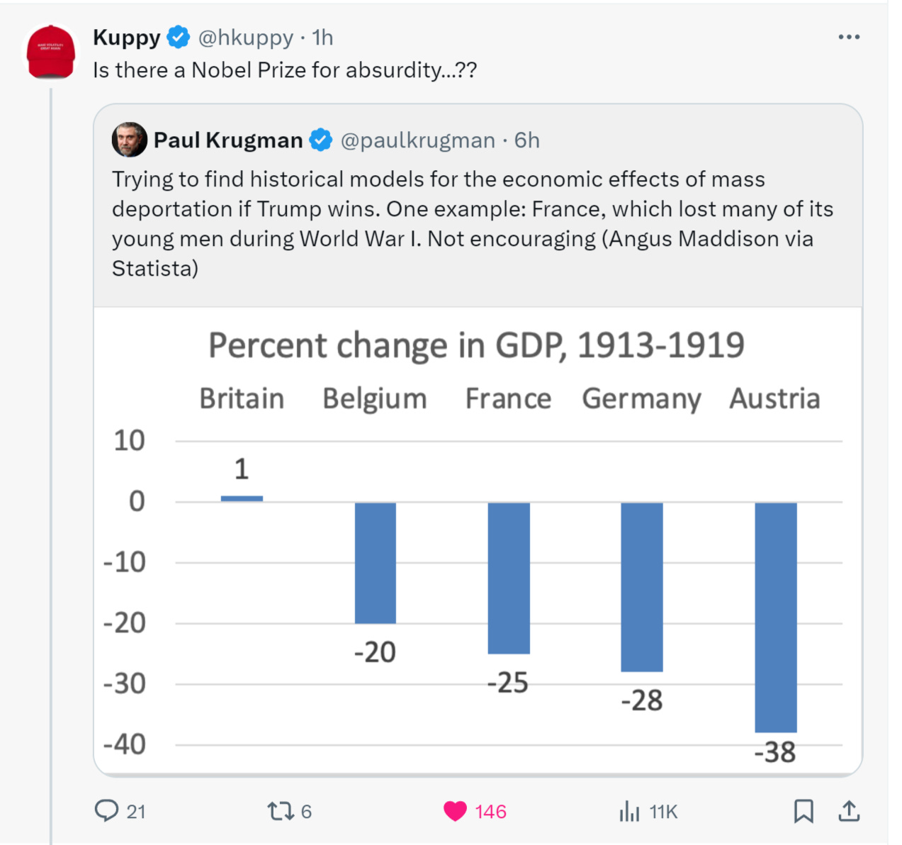 imagine trying to use the disruption of a world war to end all wars (not such a great prediction there, huh?) and the devastation of the prime of a nation’s youth on top of its infrastructure and industrial base to try to parallel the unthinkable carnage of “returning the US to its pre-covid population structure.”