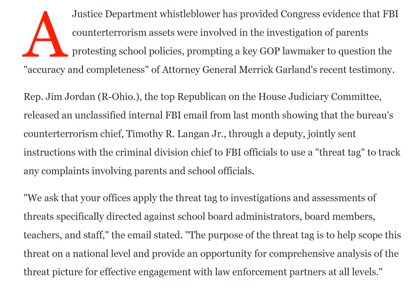 you can see it in the way the FBI has, for years, become beholden to one political party to the point of investigating political foes, lying to get warrants on them, participating in outright disinformation campaigns to influence elections, and increasingly using “woke” definitions to render we the people subject to the to the ignominiously named patriot act.