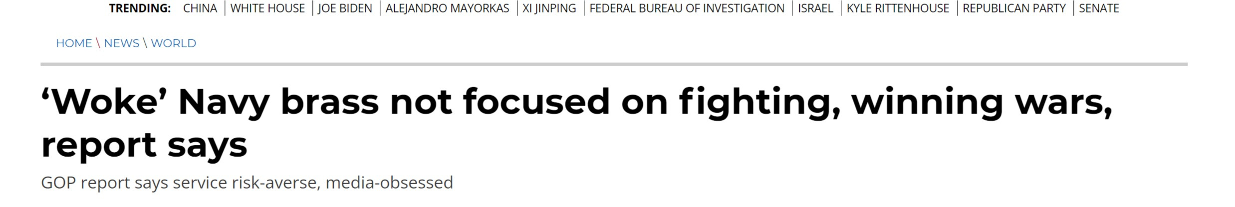 do you see why they favor the imposition of ideologies antithetical to functional fighting fitness upon the military to hound out the capable and the free thinking and leave a corps of woke leaders selected for commitment to dogmatic purity and soldiers who will follow absurd diktat over sense or community?
