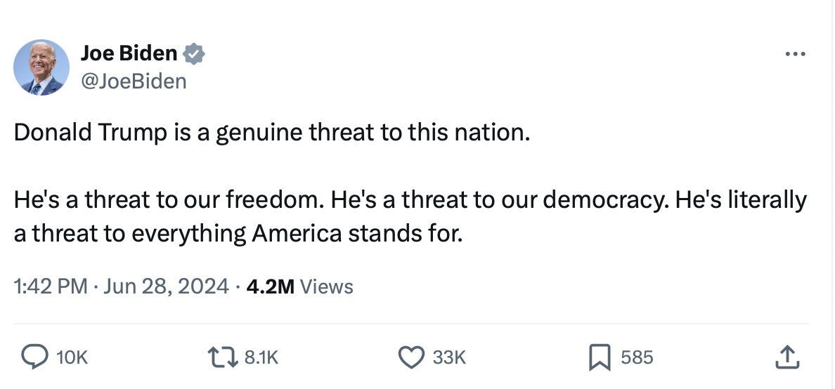 "Donald Trump and the MAGA Republicans represent an extremism that threatens the very foundations of our country."