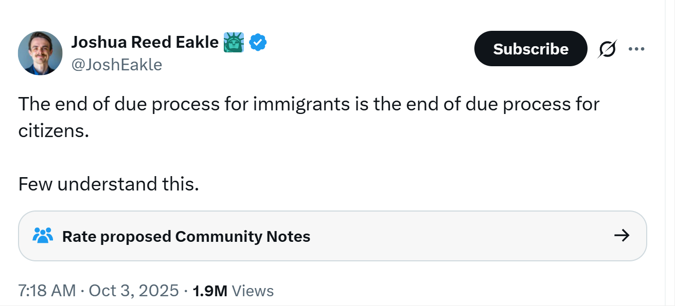 this is not a debate about whether illegal “immigrants” are owed due process.