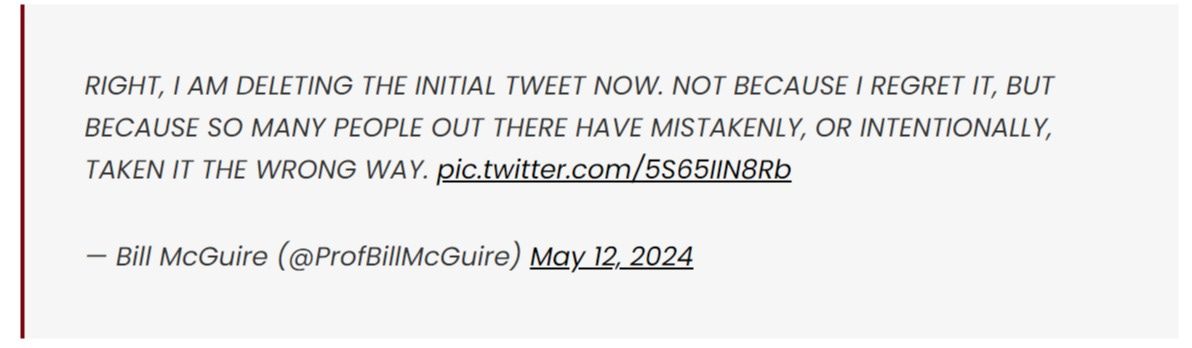 this seems quite a lot less ambiguous or “open to misinterpretation” deliberate or unwitting than professor bill would seem to be professing. one might even go so far as to say that the only honest or accurate thing the man has said of late was the “brutally honest” part. it was certainly that. no doubtski aboutski.