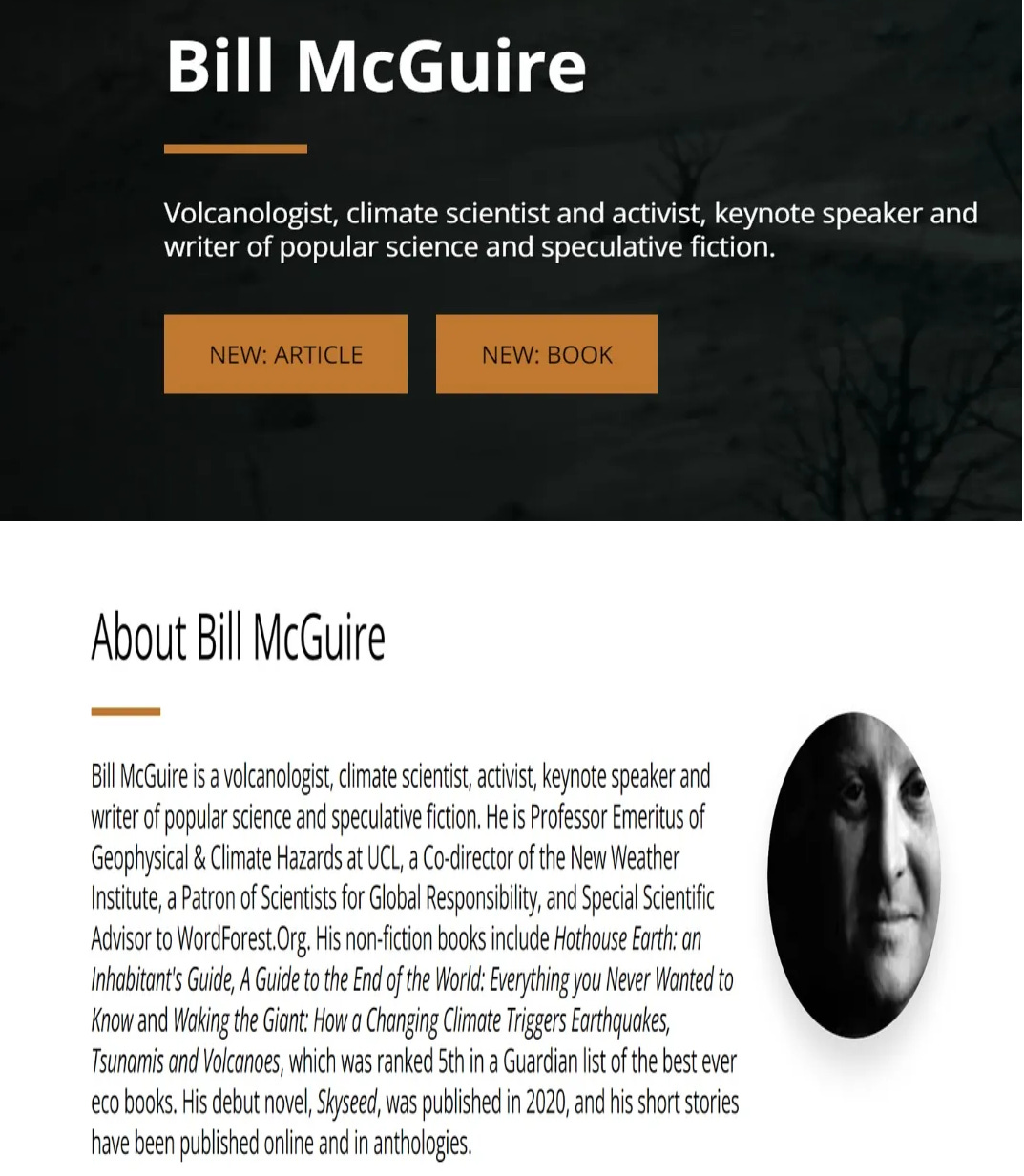 so let’s take a look at mister bill mcguire, professor of “geophysical and climate hazards” at university college in london, who has been such a topic of conversation in certain circles, shall we?