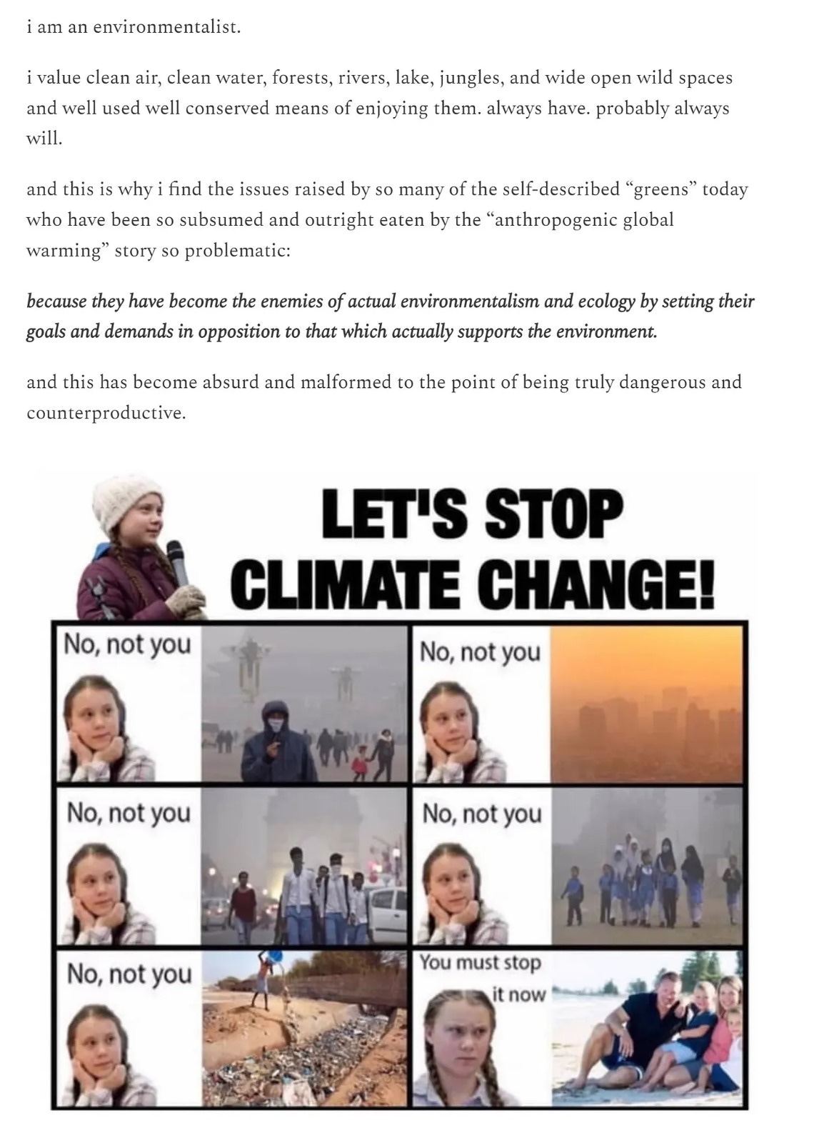 i laid out my position on this as a simple positive in the link above and excerpt it here because i believe this is important and the misguided or manipulative attempts to make carbon control into a form of global governance pose a serious threat not just to human freedom and flourishing but to the environment itself.