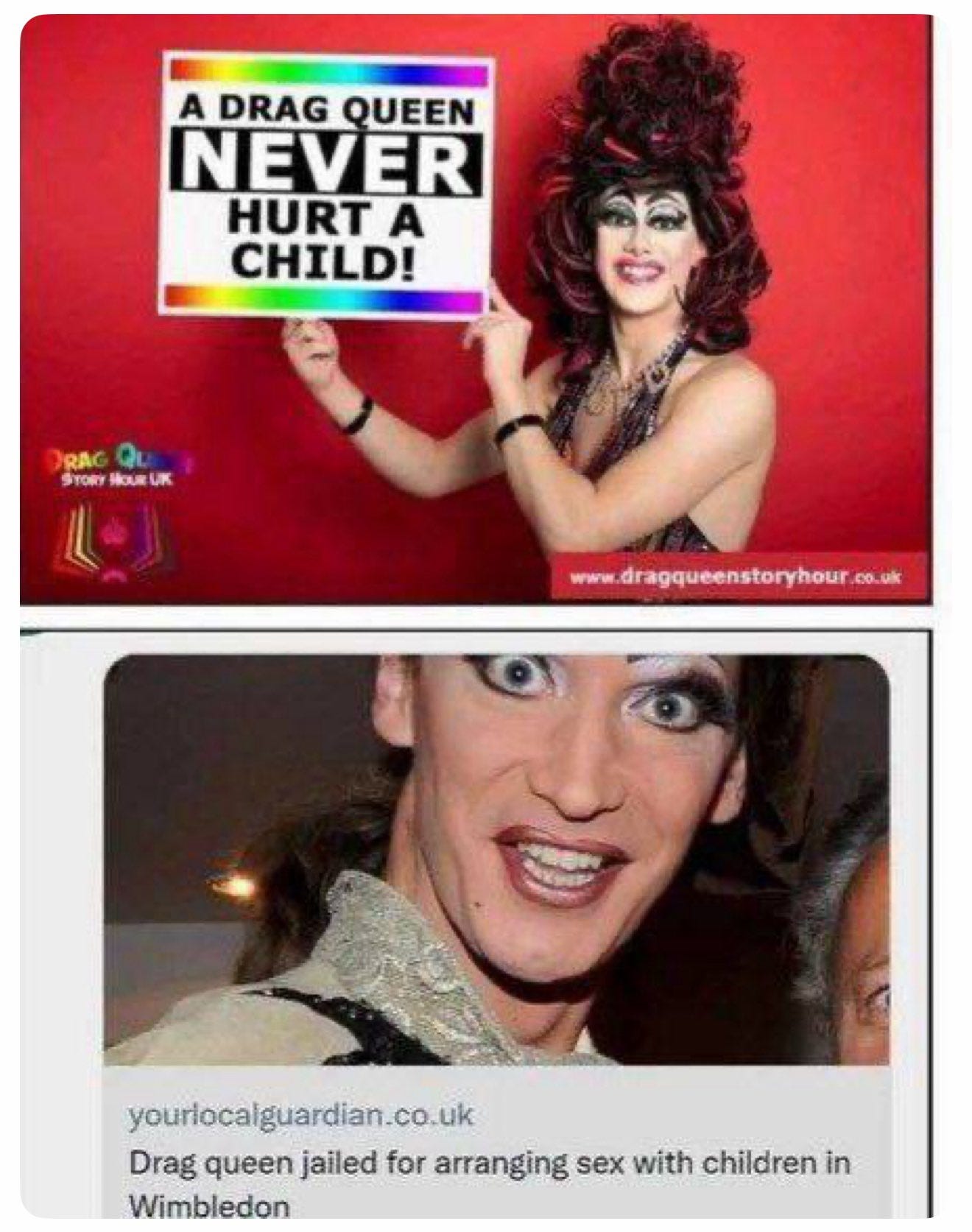 the lie is so brazen that high trust people say “well, it must be so.” but it’s not. it’s glaringly obvious what “drag queen story hour” means and why the audience is always children and never “old folks” or “people in hospital.”