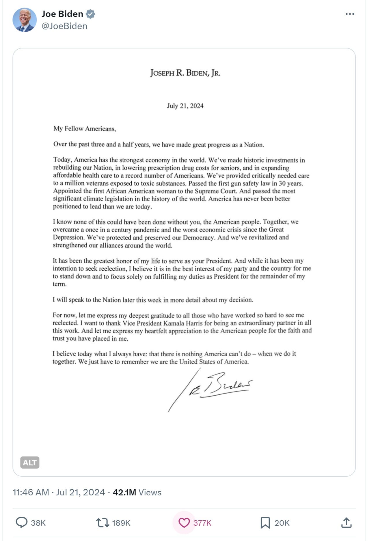 i suspect there was serious arm twisting and threat here to legacy and to the ongoing protection of his family from lawfare and prosecution.