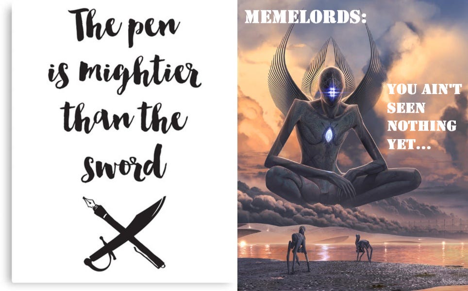 and that is the path to victory for even if modern media is indeed more inimical to information and more disposed to manipulate and mislead us it is also more capable of absolutely destroying this practice because memes are ascendant and memes are different. they comprise a serious shift in the informational arms race.
