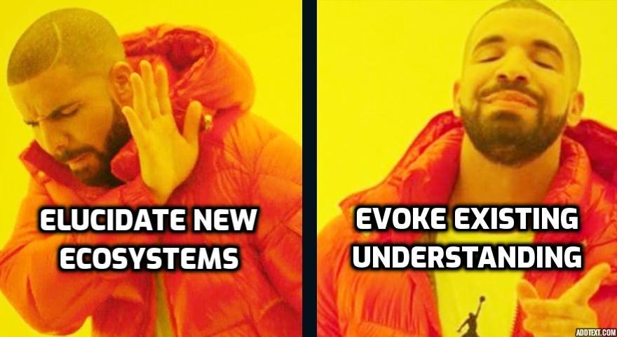 you know the pattern, so you pick up the rest. you fill in the gaps, draw the associations. the true meme does not carry in it all the information it expresses, it’s a shorthand code to show you the linkages between things you already know.