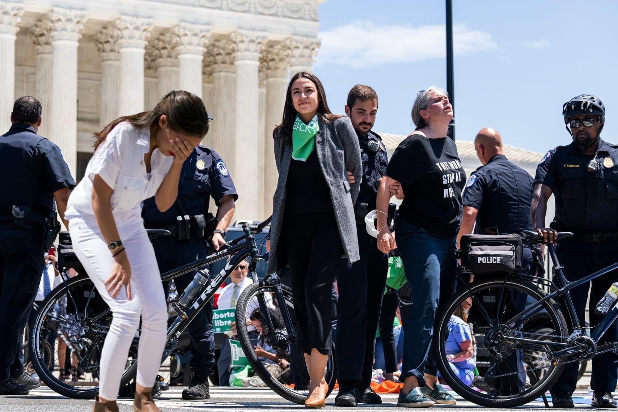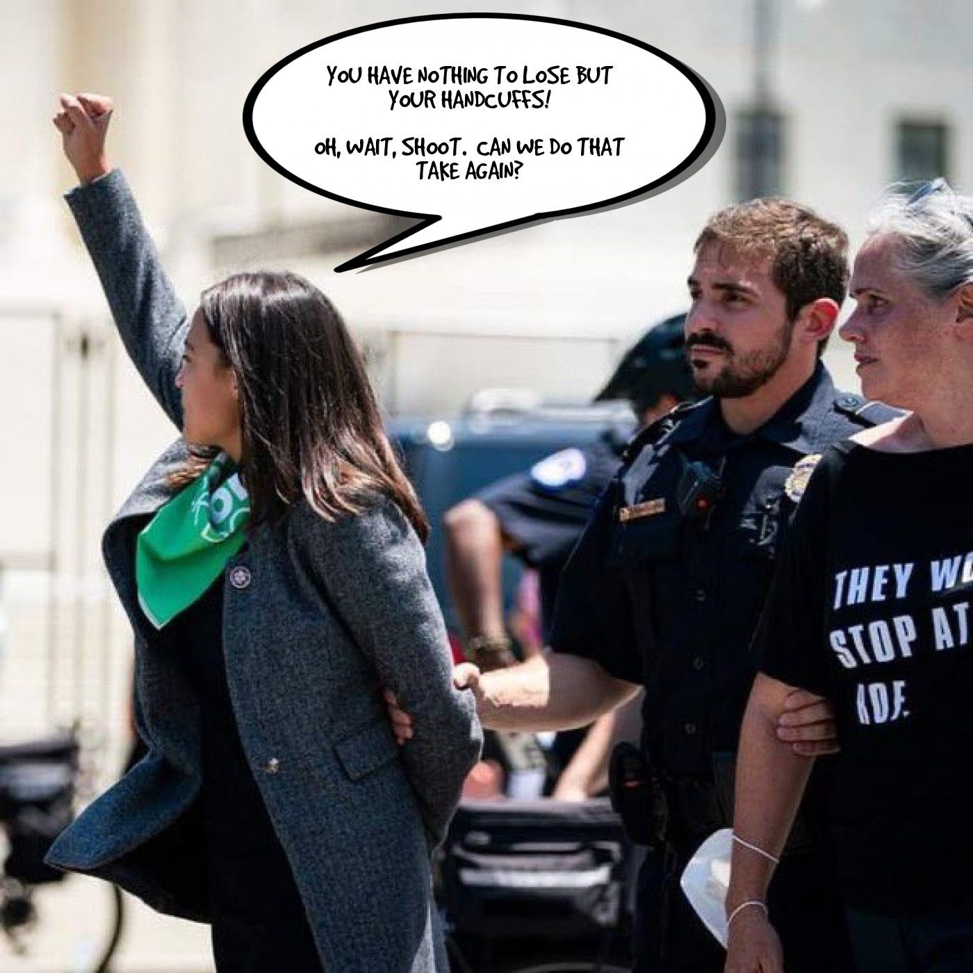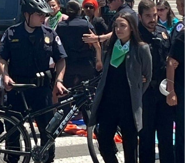 consider this image of AOC getting arrested at the roe rally at the supreme court.