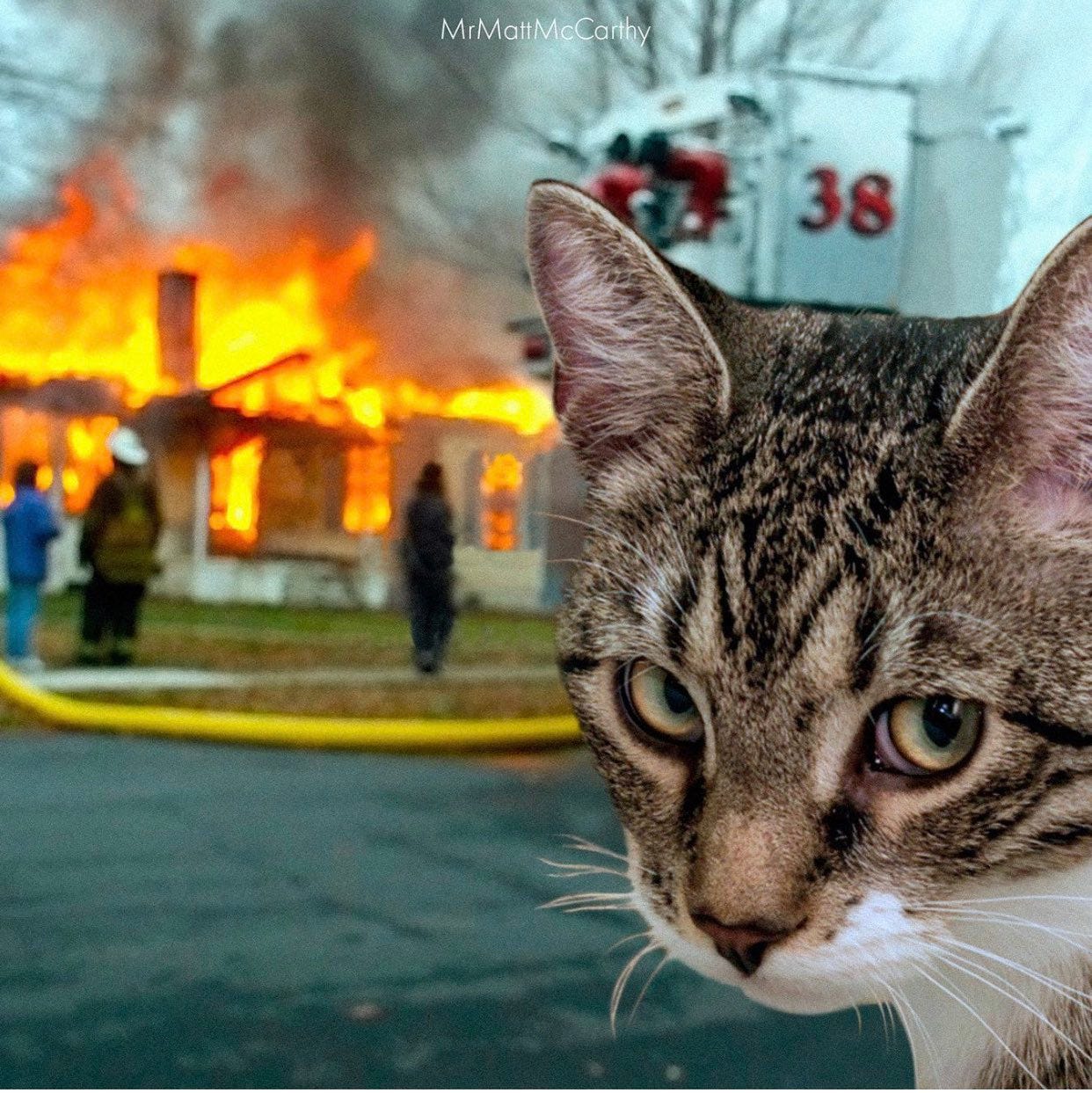 but it took about 20 seconds to fix that. some wiseacre cat comes along and adds a speech bubble and suddenly your image of oppression is an object of ridicule.