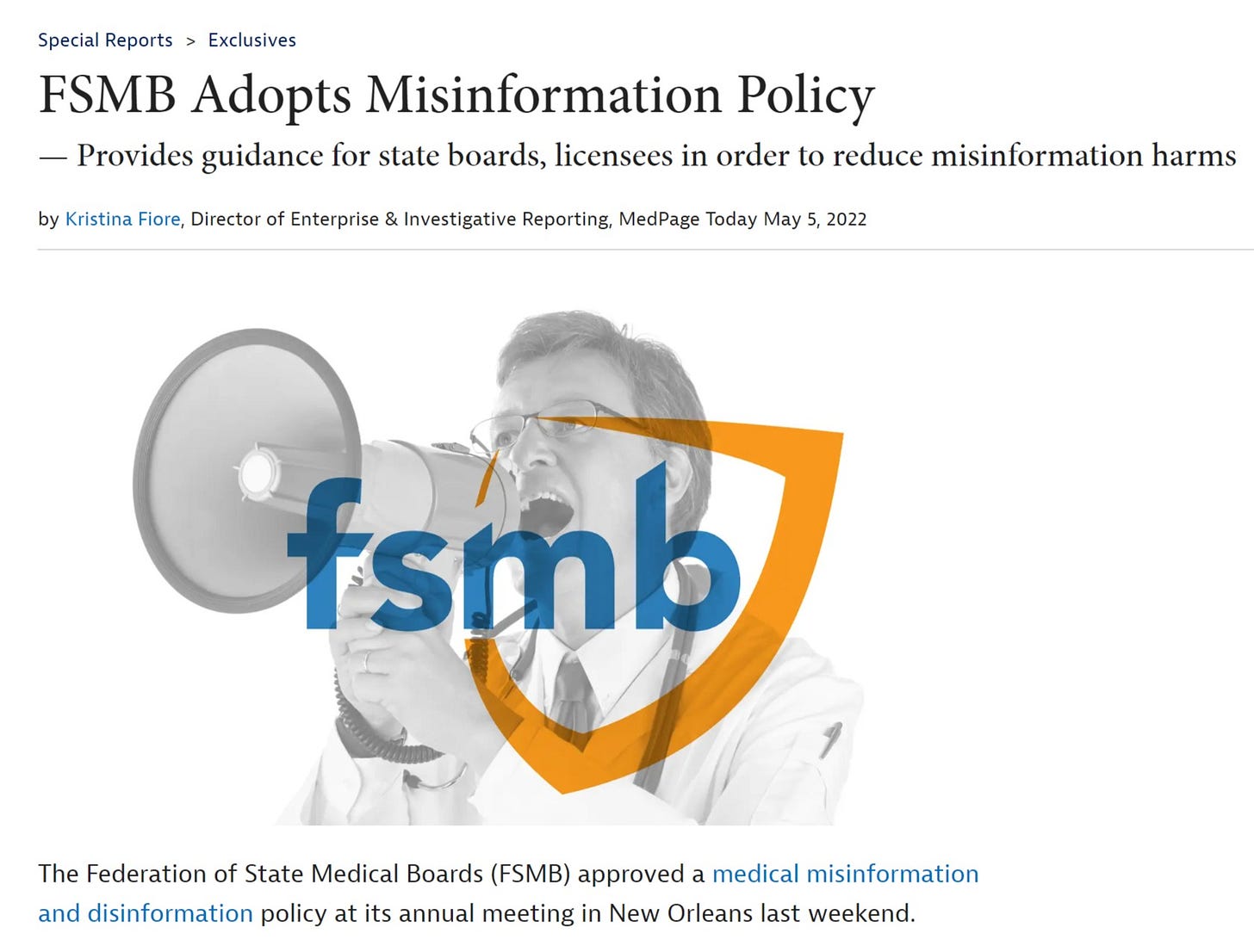 The Federation of State Medical Boards (FSMB) approved a medical misinformation and disinformation policy at its annual meeting in New Orleans last weekend.