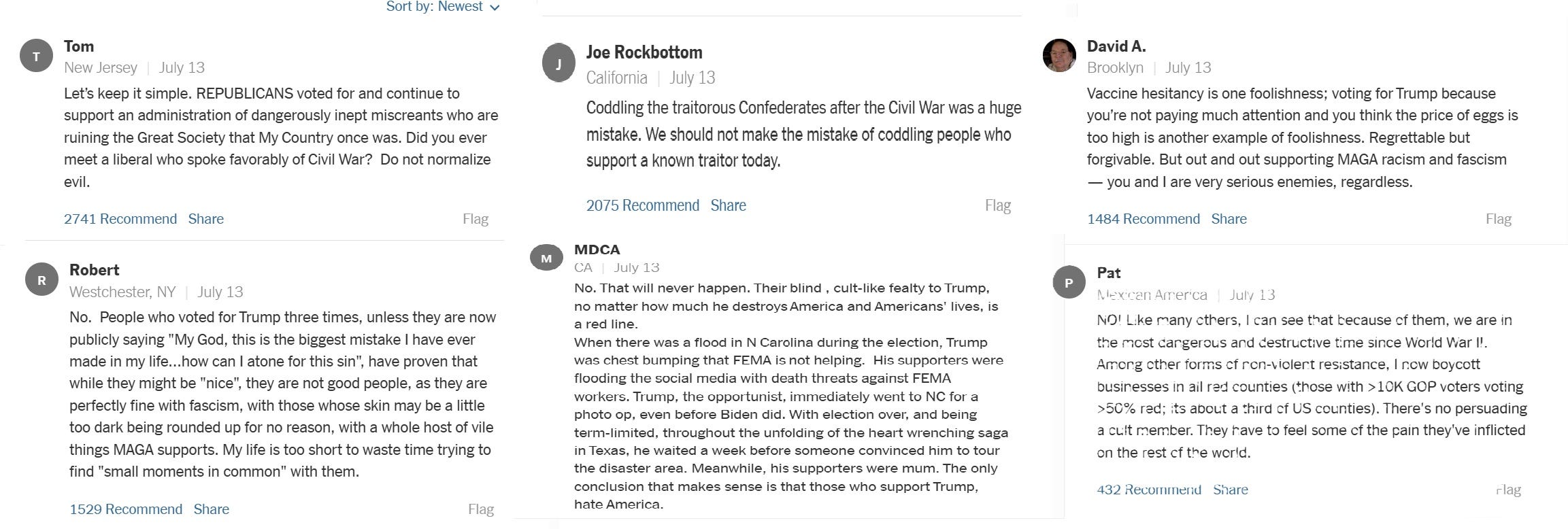 these are nothing like the worst, just the random first few i grabbed. there are 625 of these, nearly all identical in tone and content, an NPC rage mob of self-congratulation for being impossible to be around and refusing to accept anyone different than oneself.