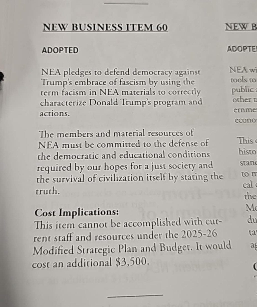 schools have lost all pretense of not going full retard and the teachers unions have exploded into overt political advocacy and thumb on scale indoctrination presented as moral imperative.
