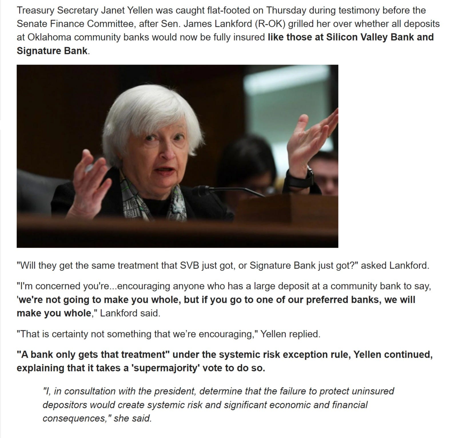 "see, it's not about picking preferred banks for political reasons, it's about politicians making arbitrary choices about meeting arbitrary criteria in order to treat certain banks and their depositors preferentially,"