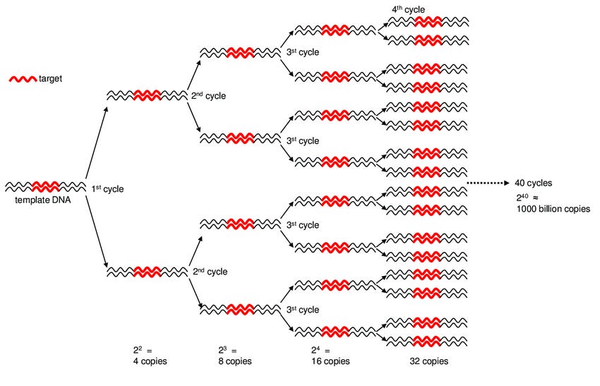 this complete inability combines in pernicious fashion with the outrageously high Ct counts being used in tests in most of the world. the test of it is to take a viral sample and see if you can culture it to replicate. this is how you know a virus is “live” and therefore any cause for concern. pretty much no one has been successful in culturing live virus from a sample that requires more than 30-33 PCR cycles to find. 30 cycles is 1 billion X amplification. 40 Ct, the standard in most of the world, is 1 trillion X amplification.