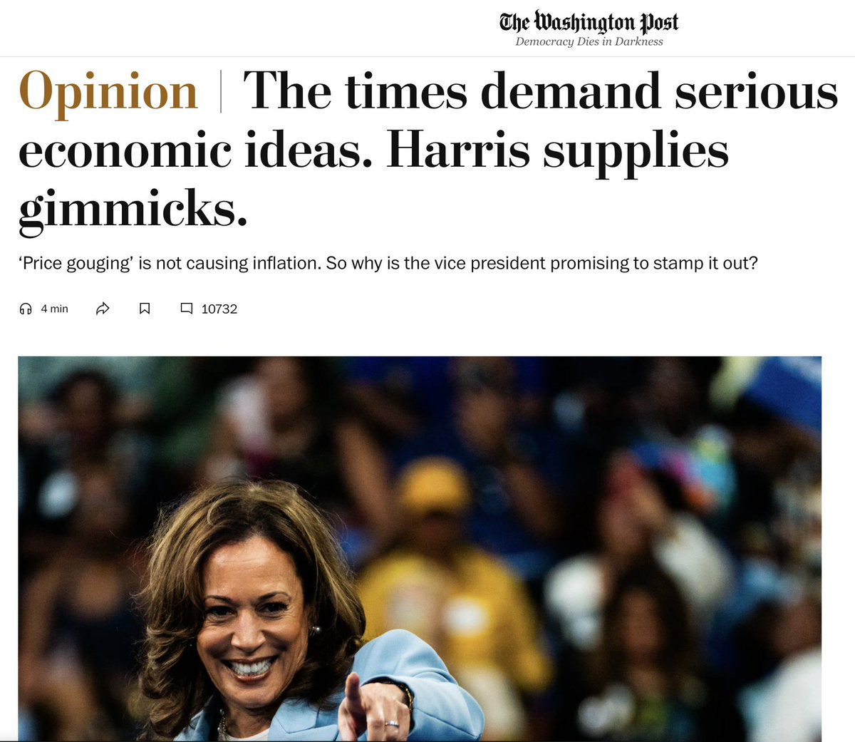 kamala’s economic ideas are among the worst since FDR. she’s clearly the fire here and even team bezos has joined in the condemnation: (i’m sure it has nothing to do with owning a supermarket)