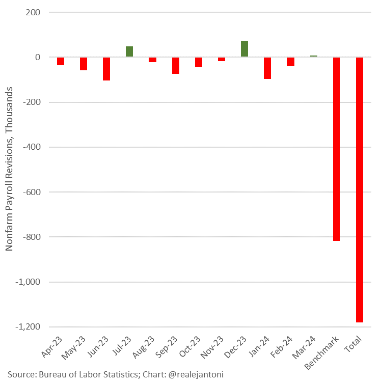 over the last 12 months, this whole story of “labor markets are strong” has been an artifact of a cumulative ~1.2 million overstatement combined with losses of full time jobs being “made up for” by part time. it’s been clearly refuted by other data (like the household employment series) dating back to early 2022.