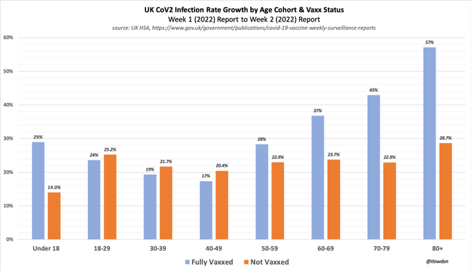the growth trends are not favoring vaccination either. obviously, there are possible testing level artifacts here, but i would generally expect them to favor the vaccinated as there are so many programs requiring constant testing of the unvaxxed, especially in school kids or working age adults and the breakout by age mitigates many as well.