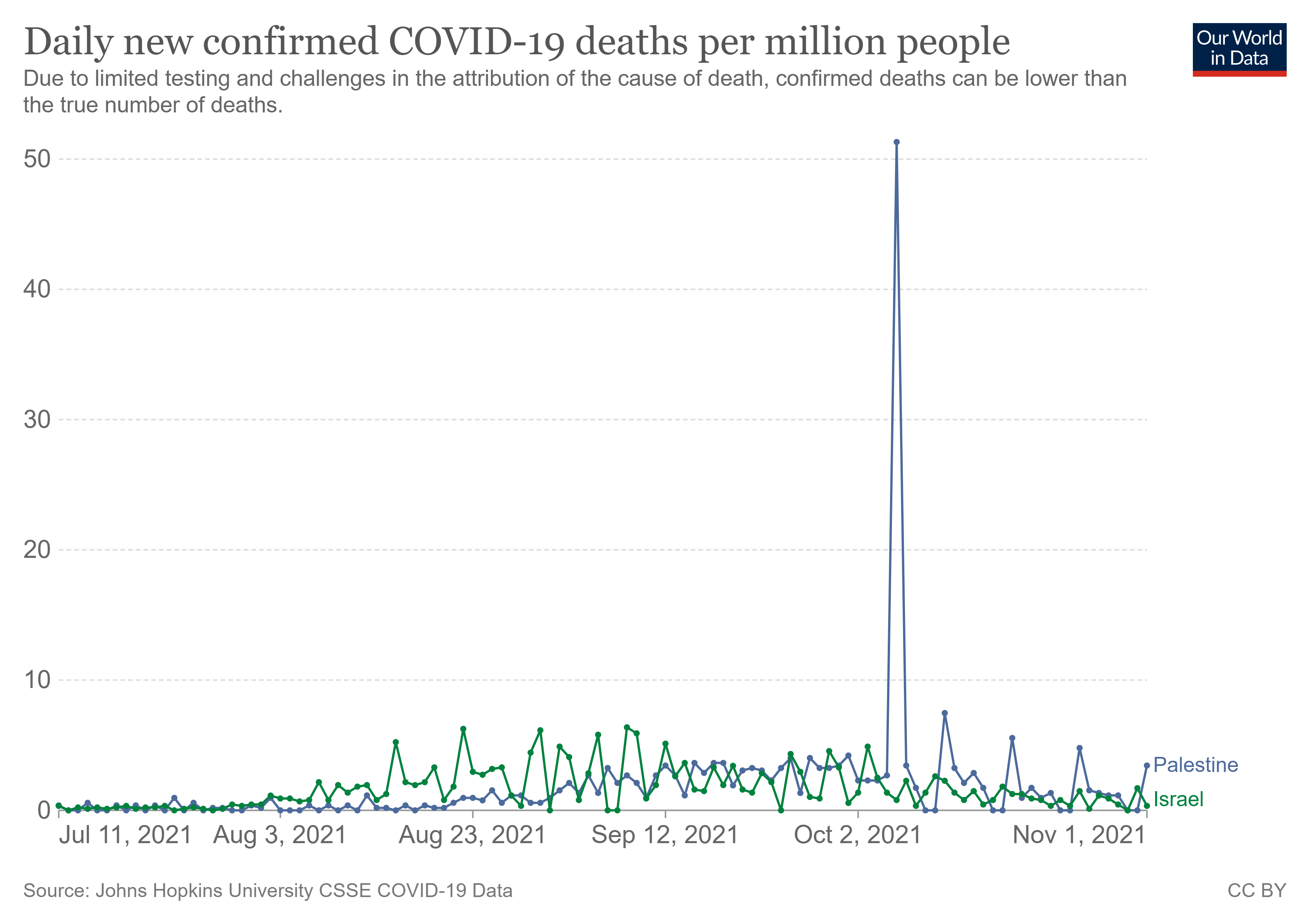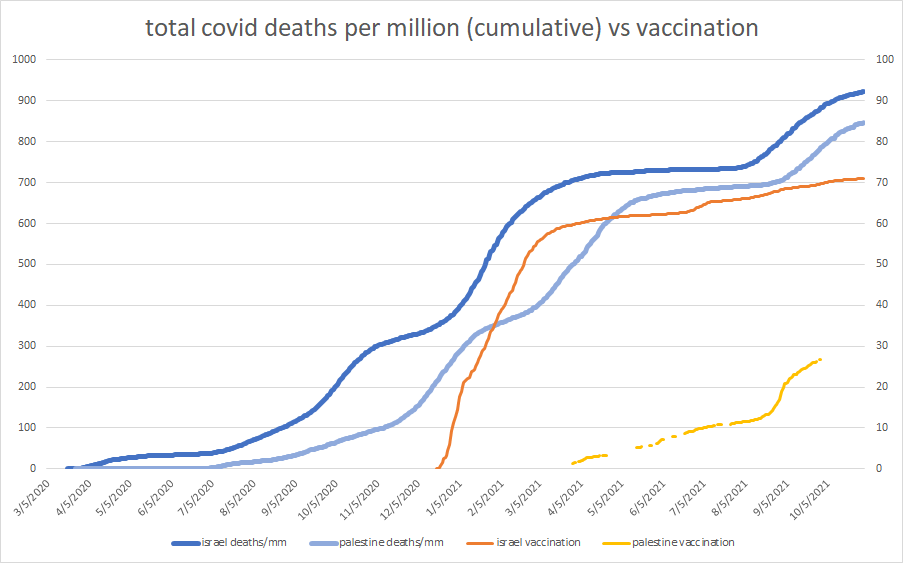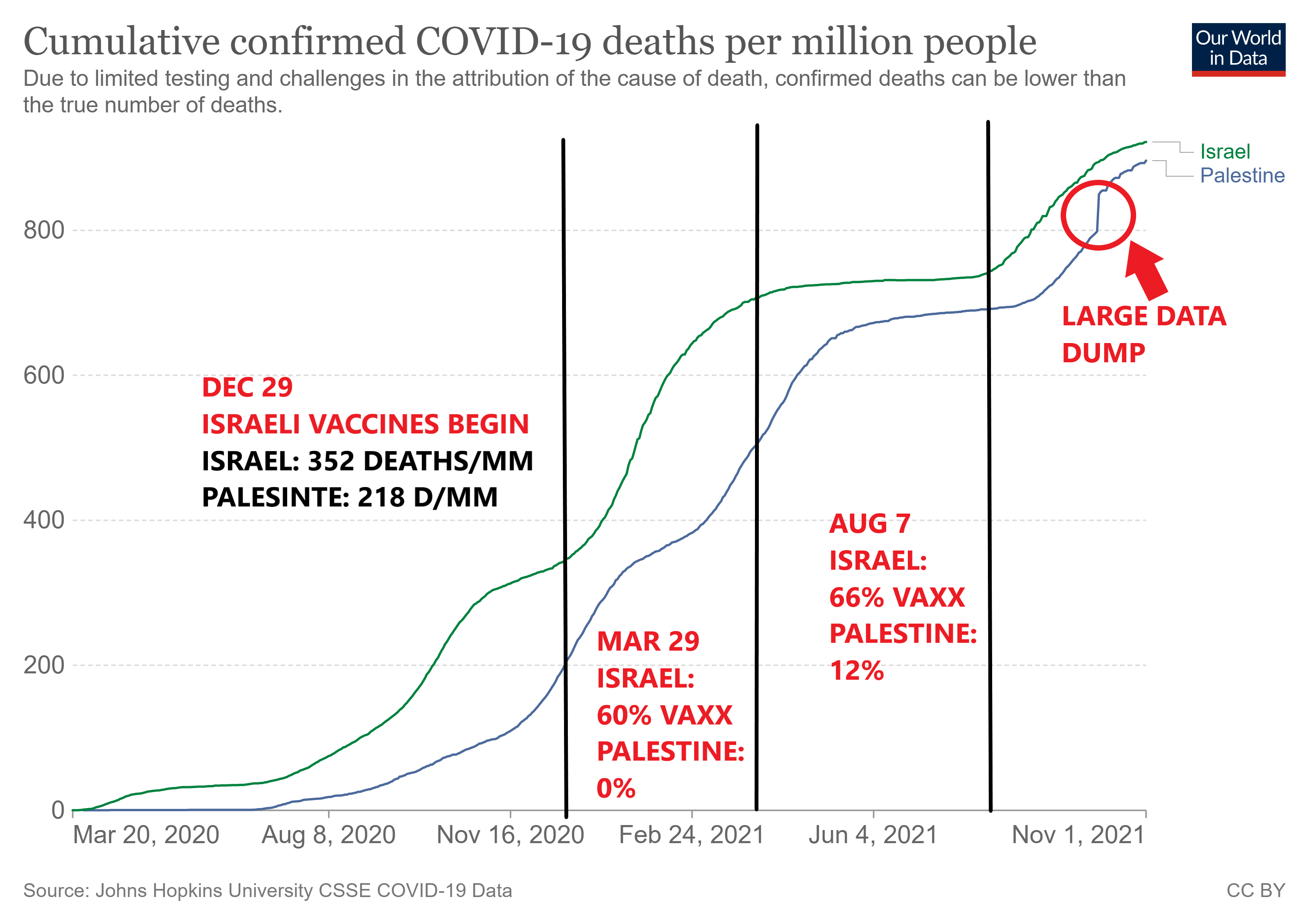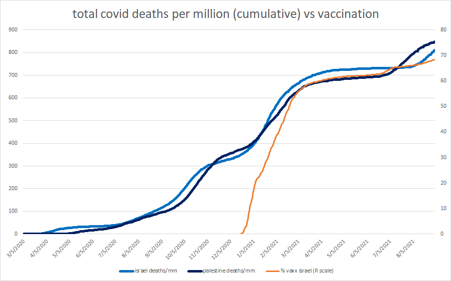vaccines seem to be having no effect on covid death rates in israel when compared to low vaxx palestine