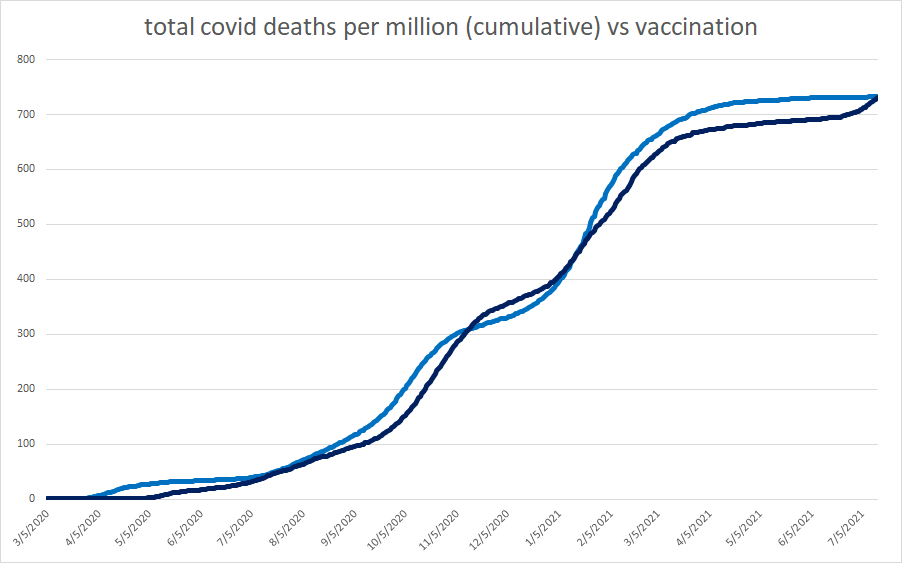 without a legend, can you even tell the difference? (and note that one of those countries rose to 60% vaxxed in that period while the other was zero)