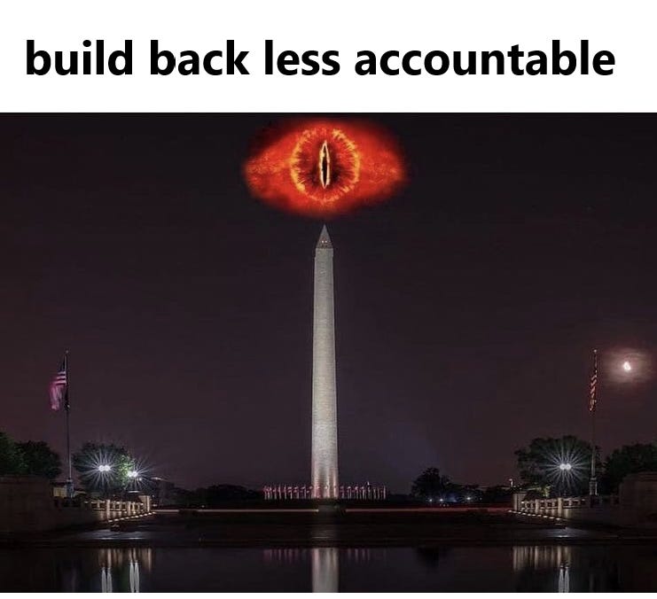 permanent bureaucracy is the forever war weapon. it’s endless control, ever more granular, ever less escapable. these folks are very right about one thing: we ARE at a turning point.