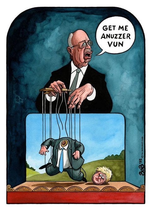 no sooner do global leaders get done congratulating themselves for their grand virtue (and hilariously failed plans) at the global climate sessions than the private jets fire up for bali to start writing new plans for global dominance, because hey, the emergency is still in place. the emergency powers grabbed for covid are still in force. and you never let a crisis go to waste.