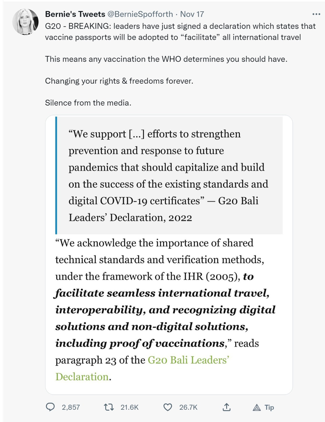 it creates a vast international system of required compliance. it locks you in place by forcing a credential to travel upon you. the standards to get this passport are created by an unaccountable and increasingly rogue organization (the WHO) that is controlled predominantly by china (whose views on social credit and surveillance societies make orwell look like thomas paine) and the cardigan adorned james bond villain aspirant himself bill gates who has been probably the most successful plague profiteer in human history.
