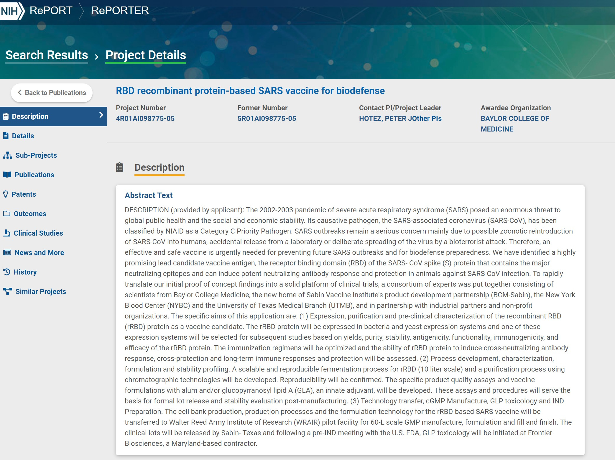 and hotez’s grant was a specific part of the funding.