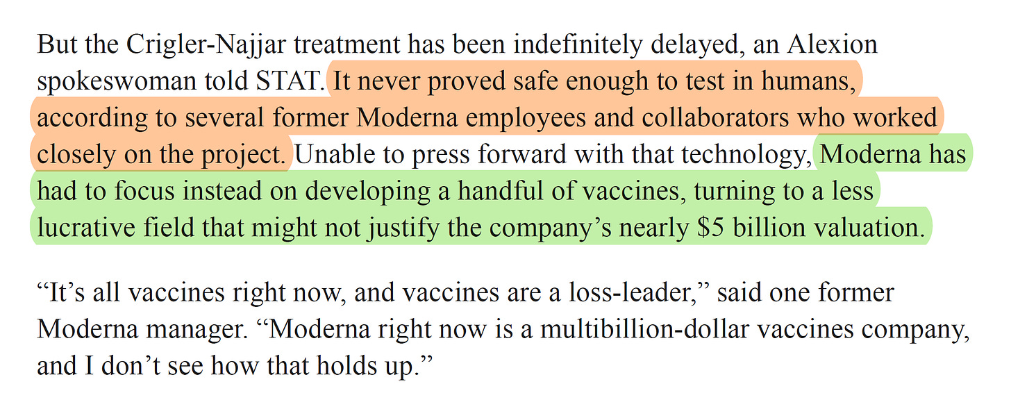 their shiny new mRNA technology was supposed to treat crigler-najjar syndrome. instead, it proved too unsafe to even begin human trials despite having picked a massively optimized target.
