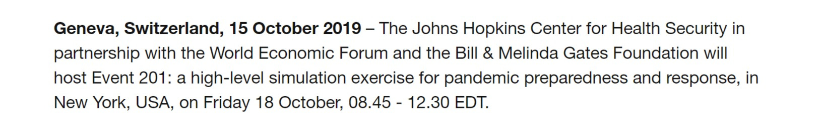 it even seems to include such luminaries as aspiring james bond villainy, klaus schwab, head of the WEF who, in an odd coincidence or truly telling harbinger, held a large simulation exercise on pandemic response.