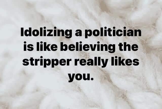 I love that quote "Idolizing a politician is like believing the stripper really likes you."