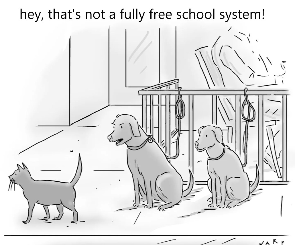it’s not like the system we’re giving up is so precious and working so well. it’s not like schools aren’t teaching lots of things right now that lots of people hate but have no say in.
