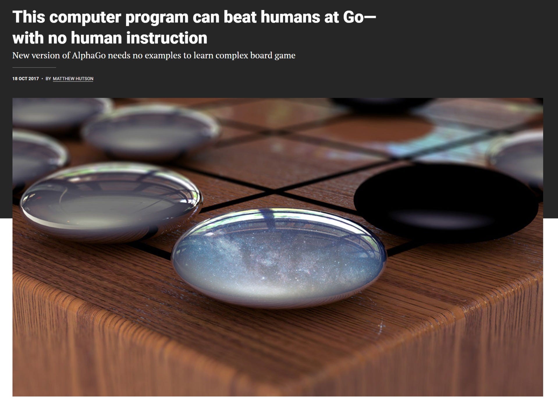 it turns out the moves were fantastic, better than any human had ever imagined. more telling, it turns out humans flat out never understood the game and possibly never will. it’s too hard for us. even our best play like dopes. how’s that for a narcissistic blow?
