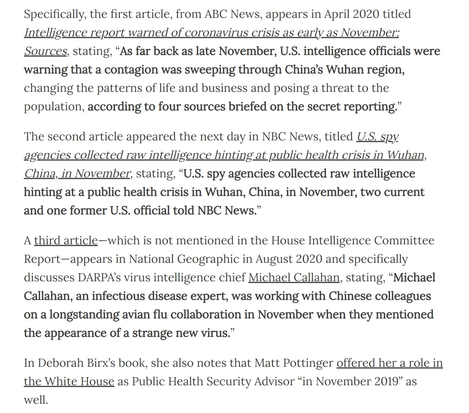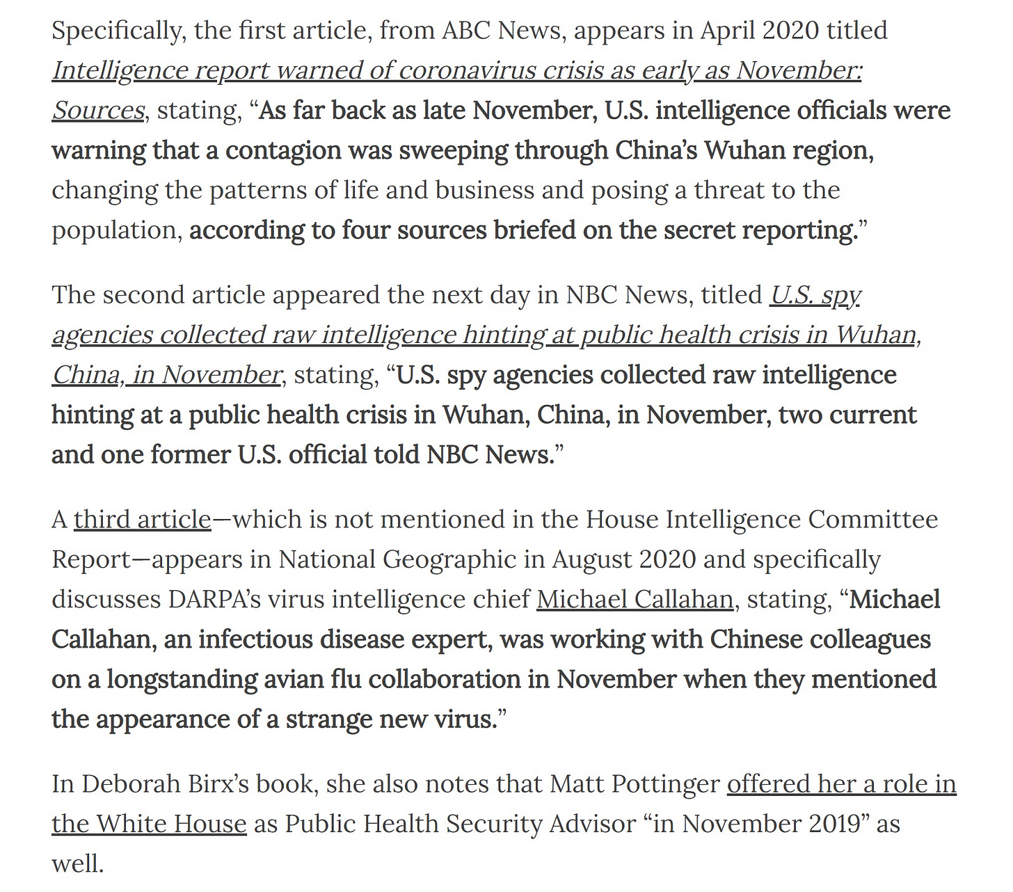 the US intelligence community (michael spenger substack) was suspected to have caught wind of covid back in november 2019.