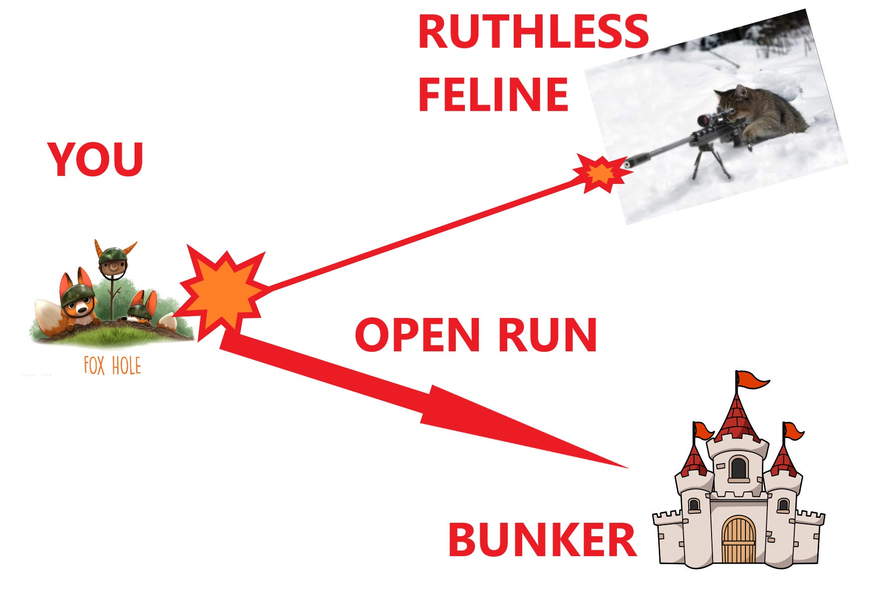 you’re a soldier pinned down in a foxhole. across the field from you is a bunker. getting into the bunker will greatly reduce your risk of being shot.